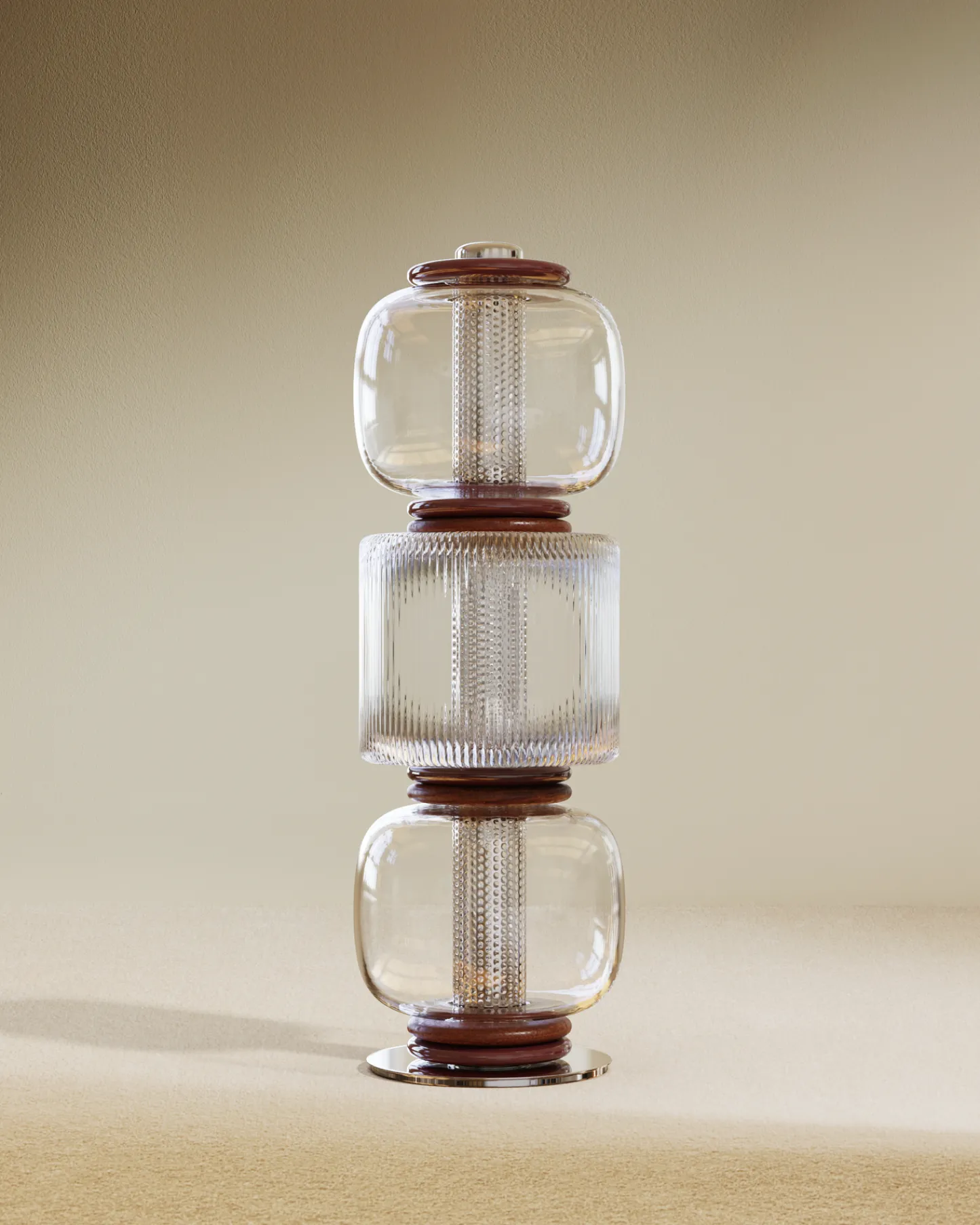 Globe et cylindre strié en verre soufflé