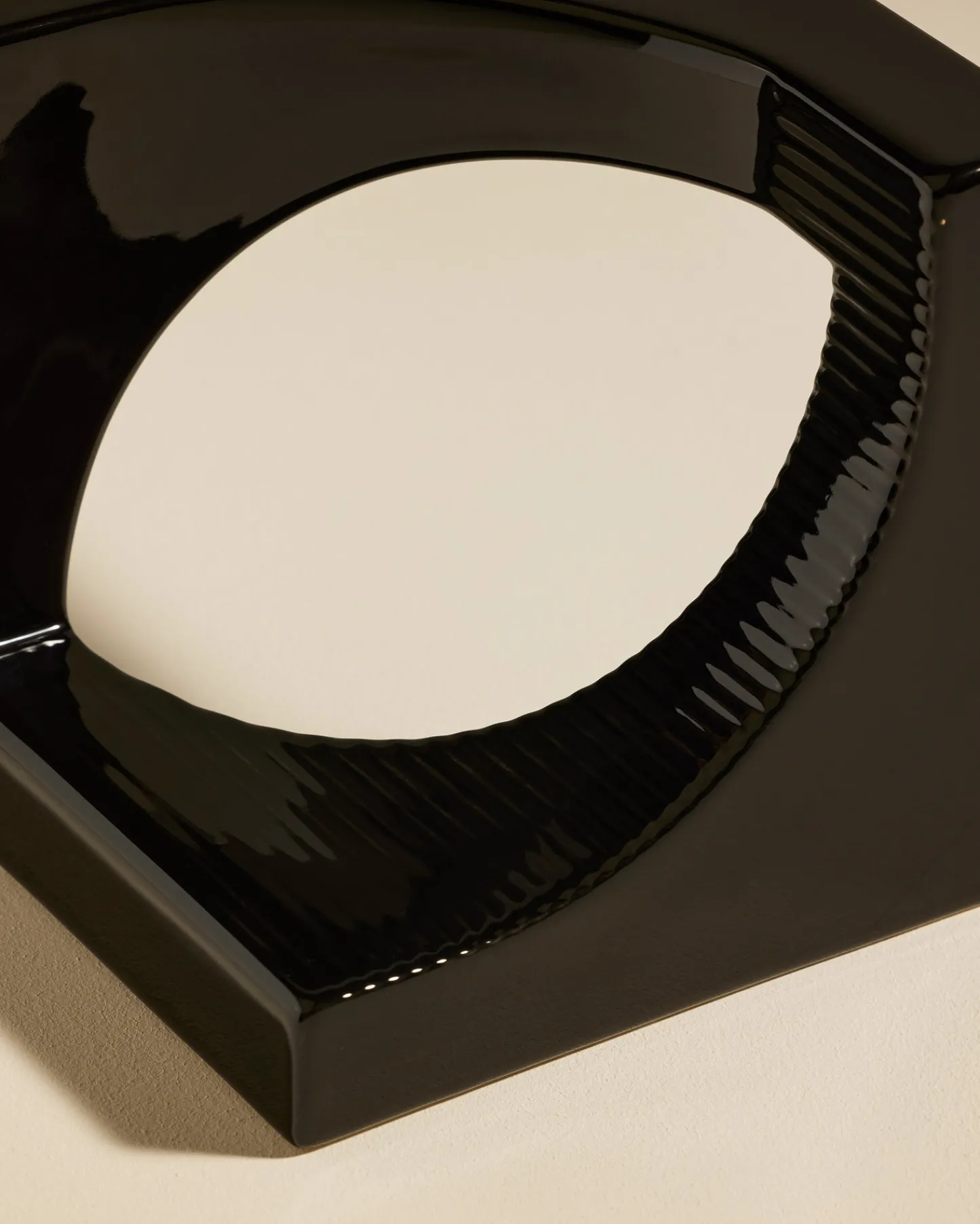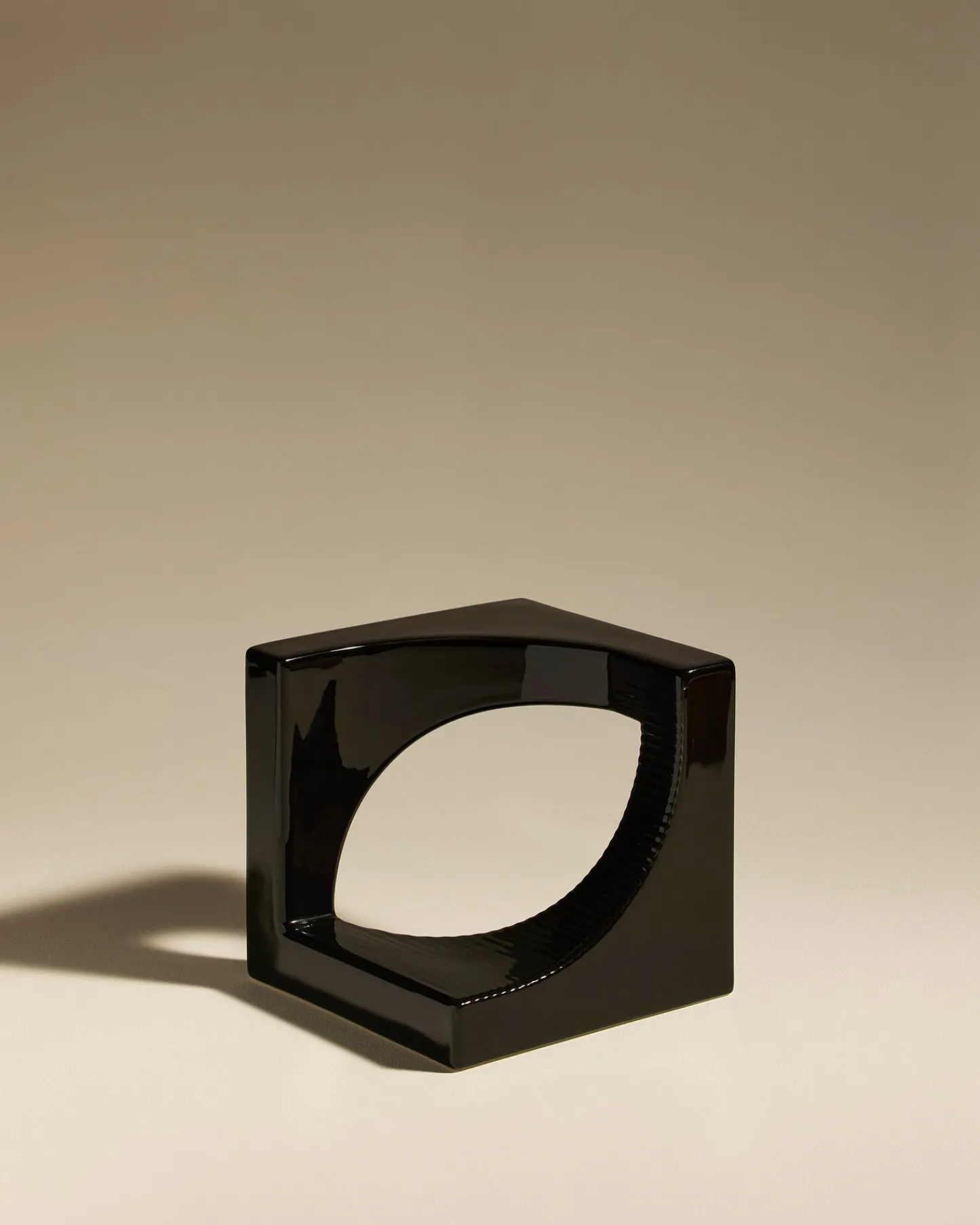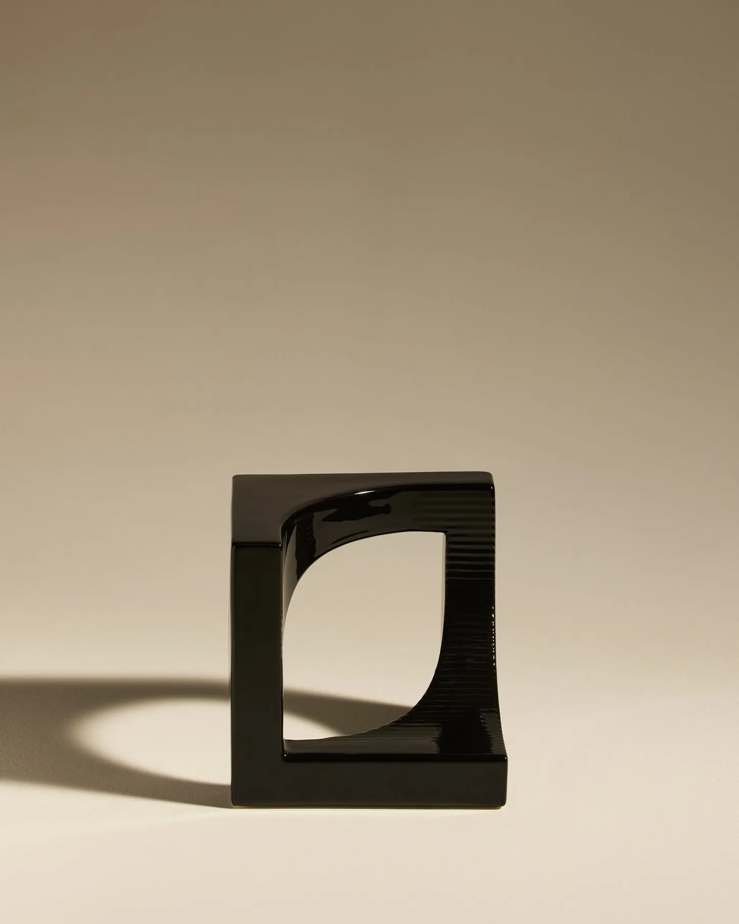 Coulée en céramique et patinée d’un émail tantôt réactif (coloris Noisette), tantôt brillant (coloris Noir et Amazonite), cet objet décoratif et fonctionnel est une pièce unique.