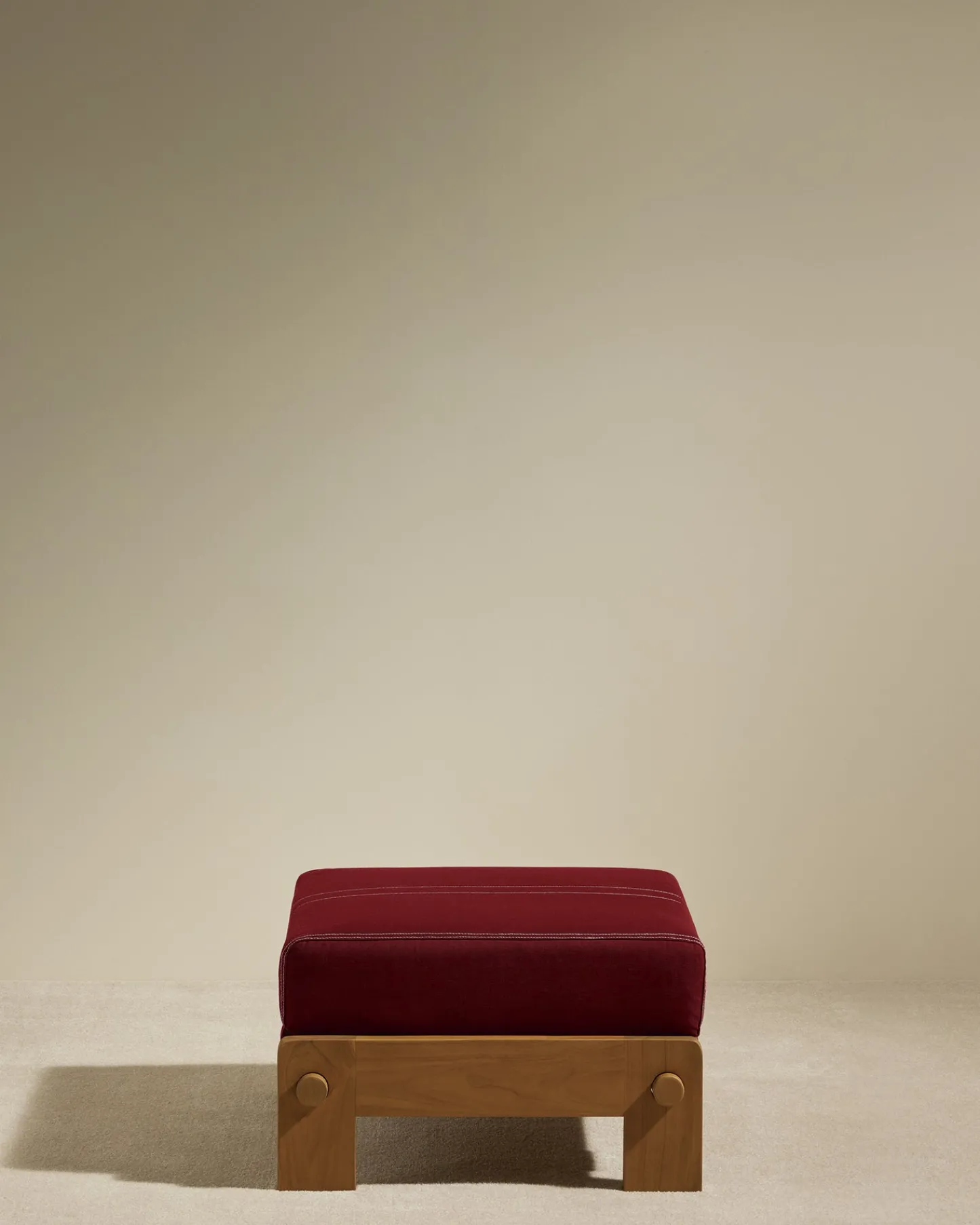 Conçu en teck naturel, ce pouf arbore un coussin confortable et élégant en coton avec piqure sellier.