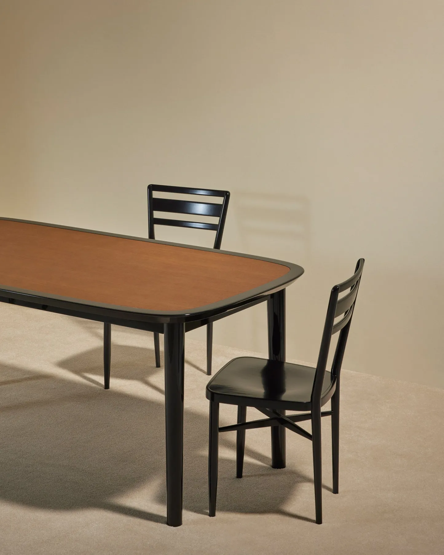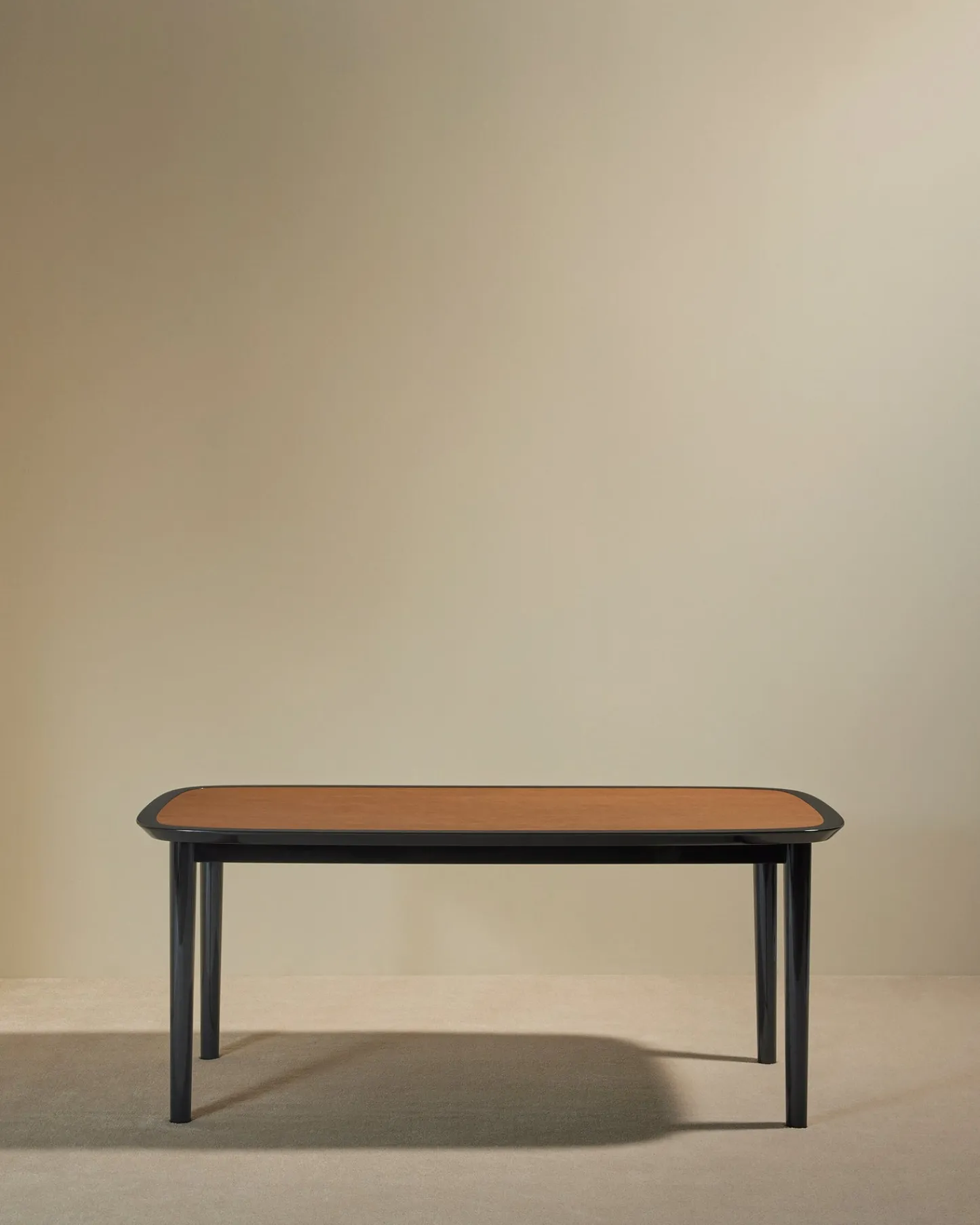 Jeu de dupes. Nouvelle signature de la Maison, la collection Équilibre joue sur les accords parfaits entre chêne brut et laque haute brillance. Sous ses airs ronronnants avec son plateau en MDF plaqué chêne teinté, la table Équilibre étonne — grâce à des pieds effilés laqués, mais aussi une ceinture en MDF laqué. Versatile, la voilà déclinée en trois couleurs Maison, noir, écru ou carmin.