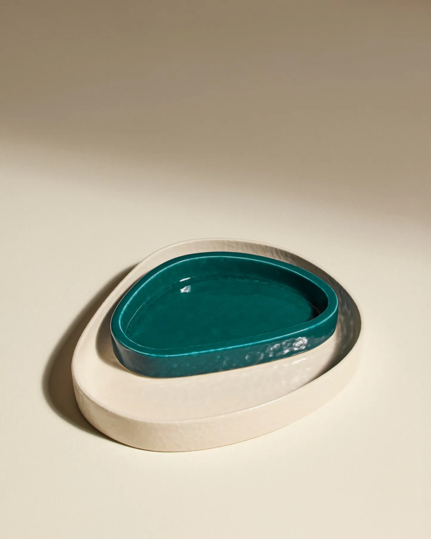 Deux en un. Pièce singulière de Maison Sarah Lavoine, le vide-poche Mars est pensé en céramique, une matière délicate et fonctionnelle. Son émail réactif mat lui confère des nuances chatoyantes, changeantes au fil de la journée, selon la lumière.