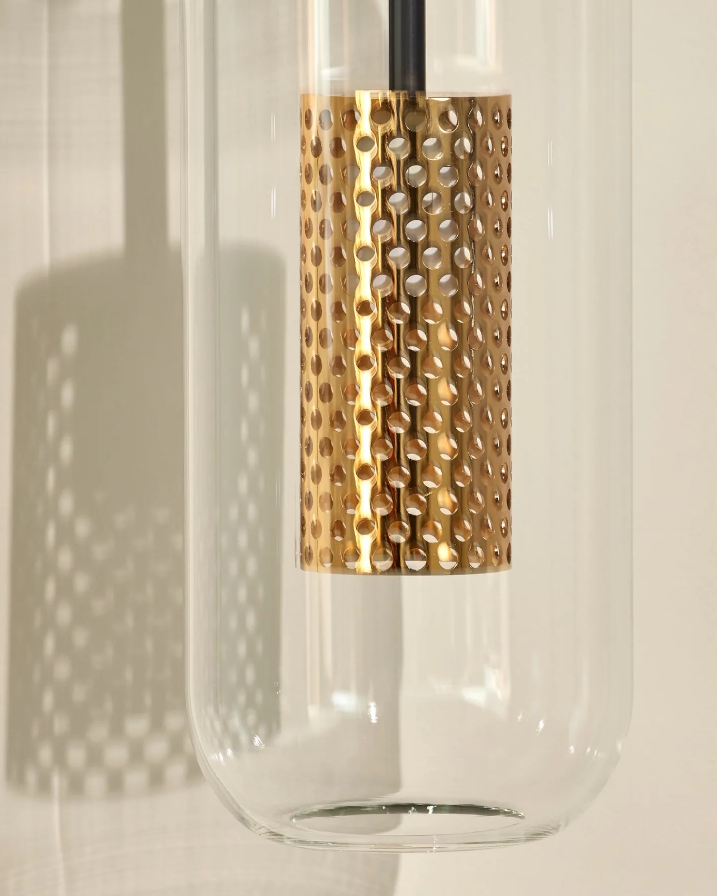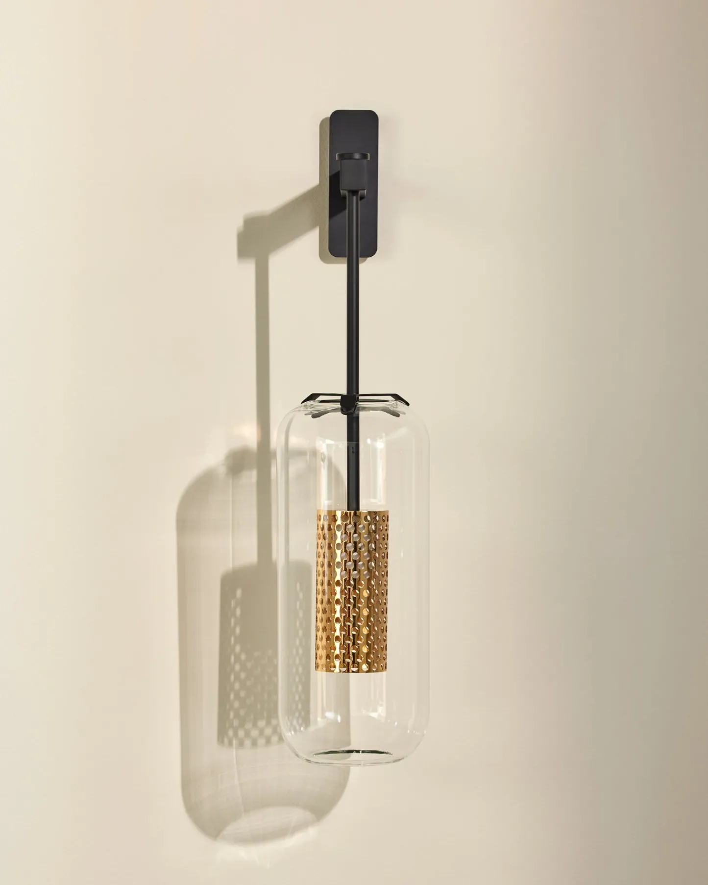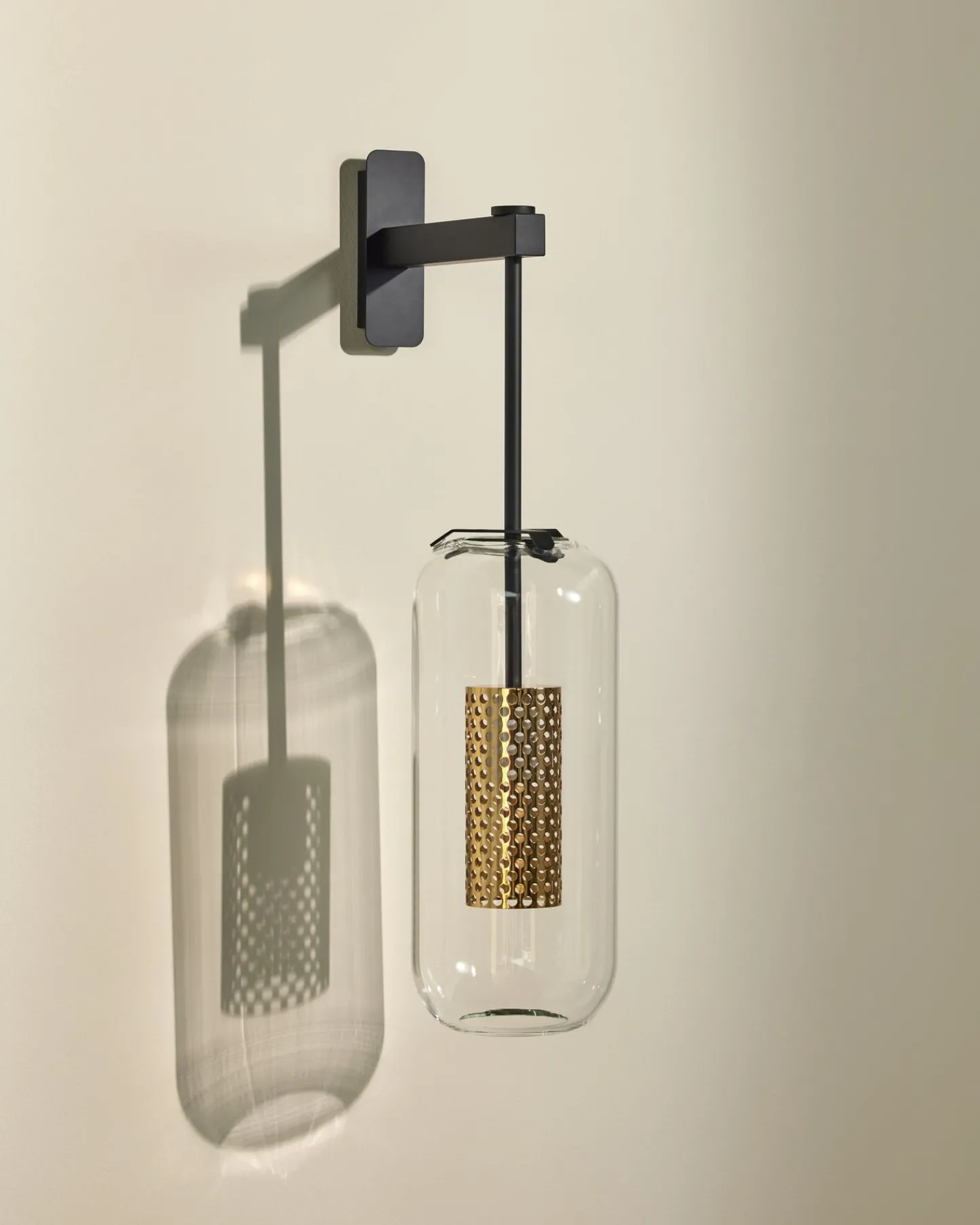 Idée lumineuse. Dessinée en 2015 par le Studio d’architecture pour le restaurant Victoria (Paris 16e), l’applique Vadim est depuis devenue un incontournable de Maison Sarah Lavoine. Inspirée des années 30, elle encapsule une cage en métal doré dans un bulbe de verre aux contours organiques. Aérienne, elle se structure par une tige en acier thermolaqué noir fixée à deux branches perpendiculaires.