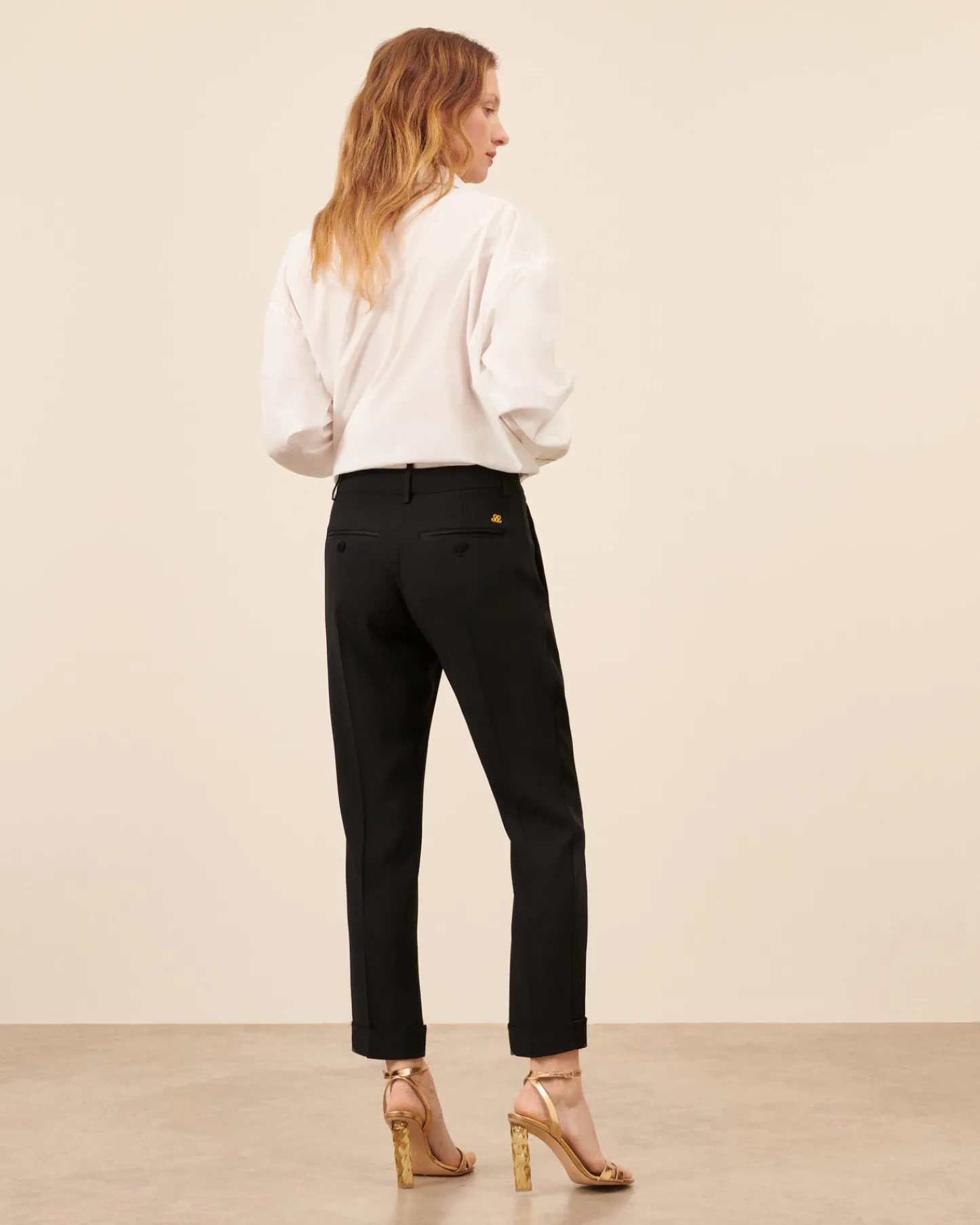 Le pantalon Claude, fidèle à son style originel, reste intemporel pour celles qui préfèrent une coupe classique, taille basse et jambe ⅞.