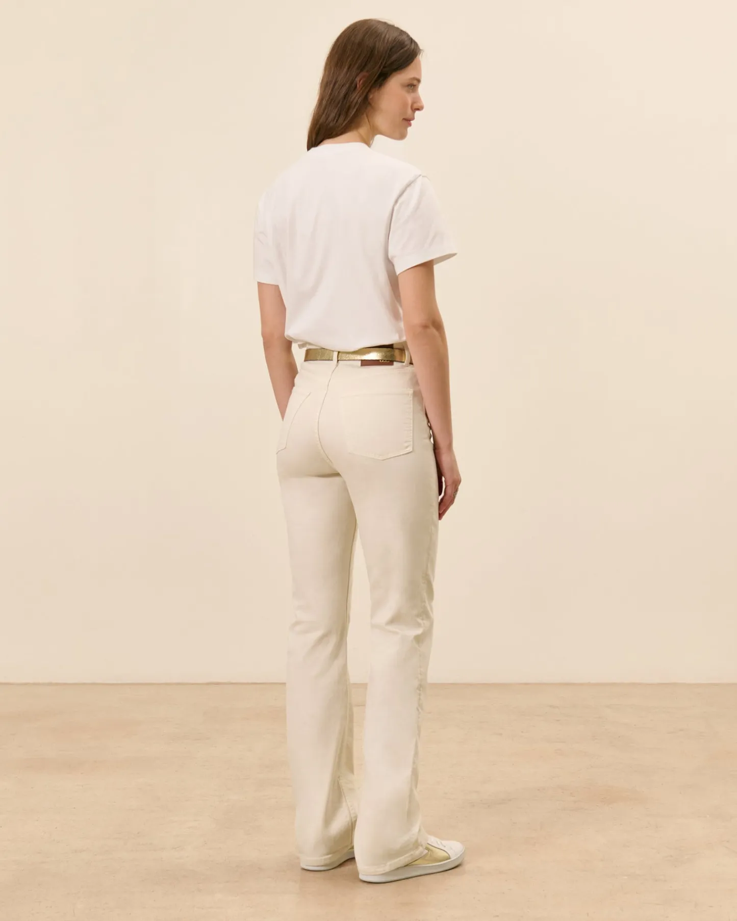 Avec sa jambe plus droite que le John, sa couleur écru et sa taille haute flatteuse, le Jean Raspail allonge la silhouette et s’impose comme un essentiel du vestiaire.