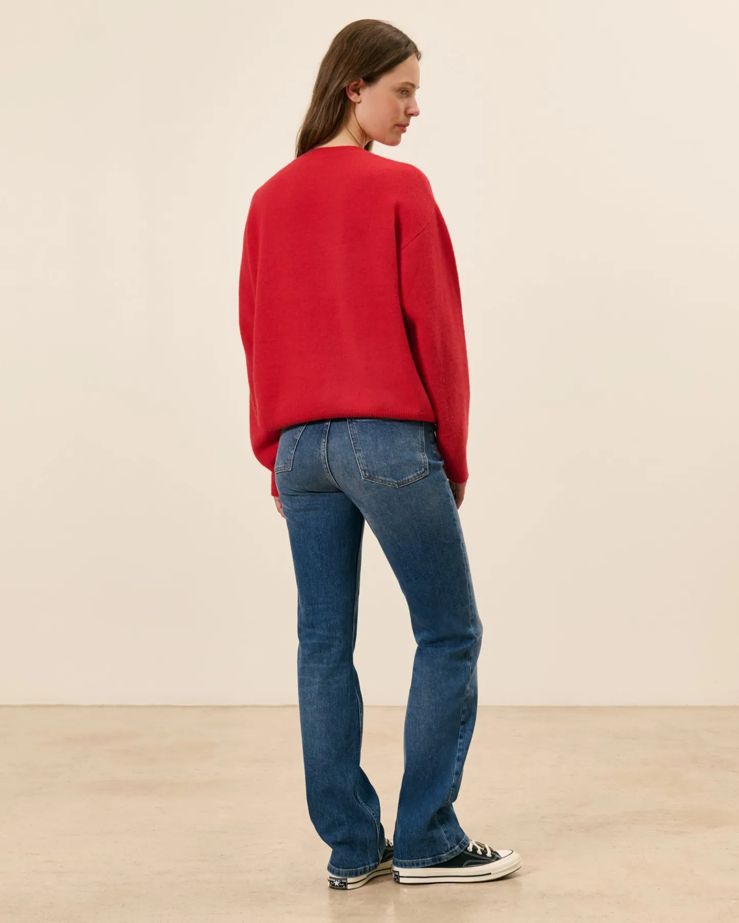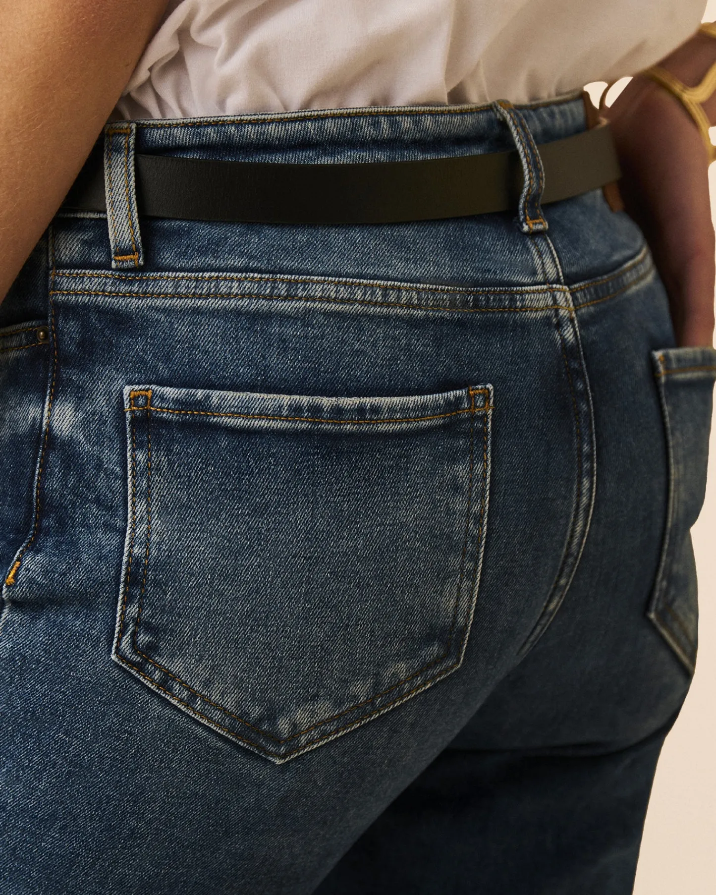 La mannequin porte une taille 27 et mesure 1m74.