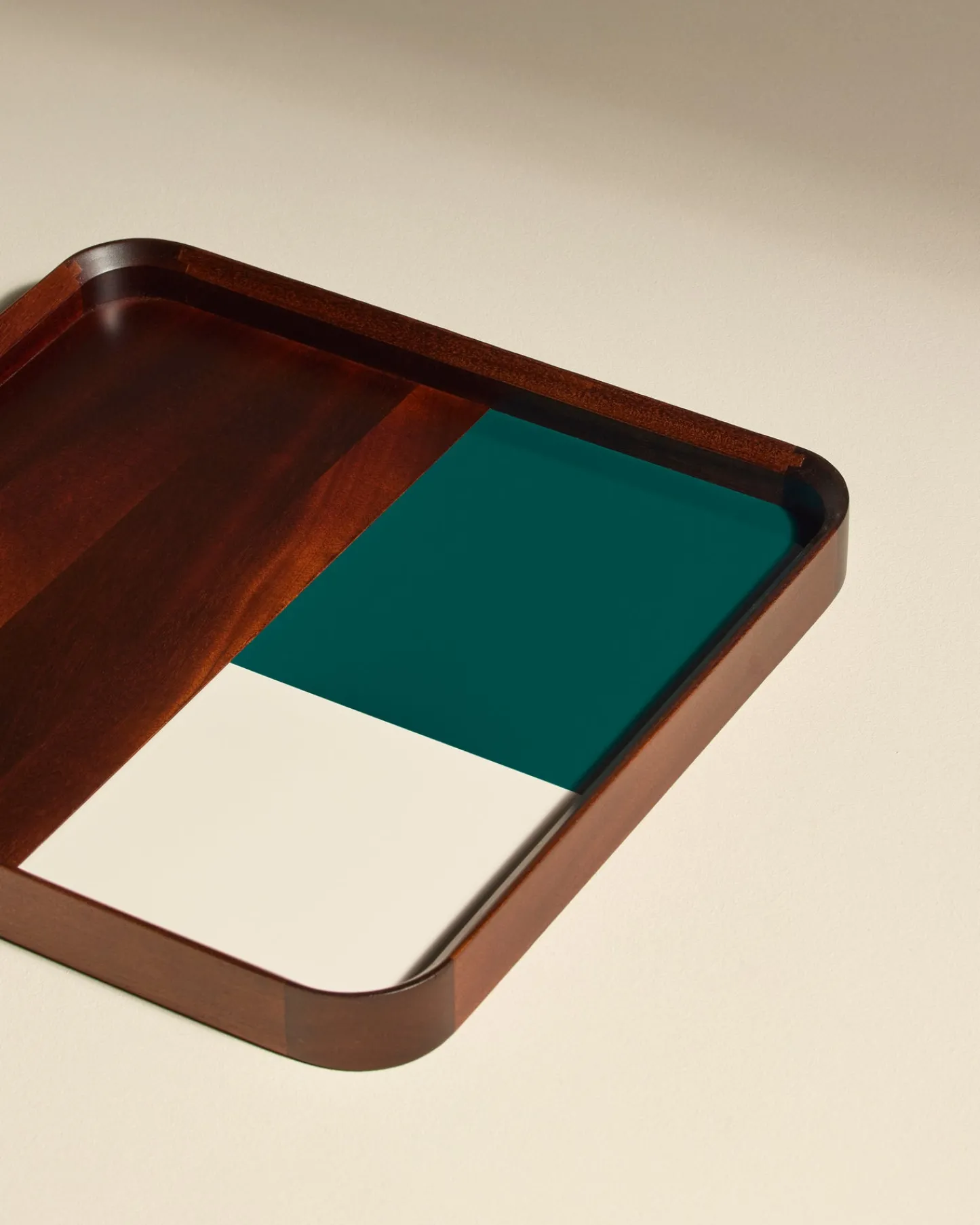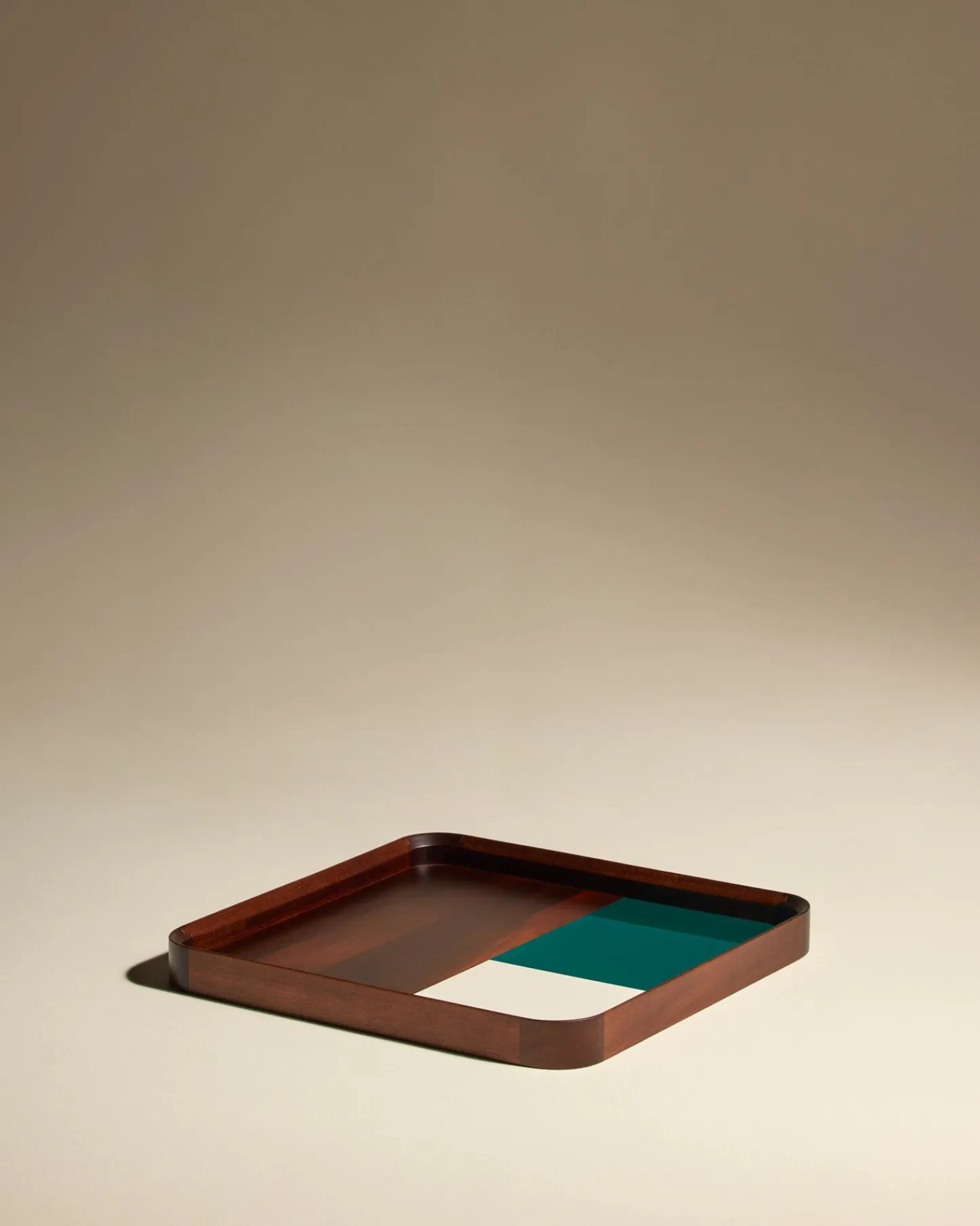 Conçu en bois exotique de freijo au Portugal, le plateau Sicilia a été travaillé à la main et à la machine pour l’assemblage des angles par tenon-mortaise.