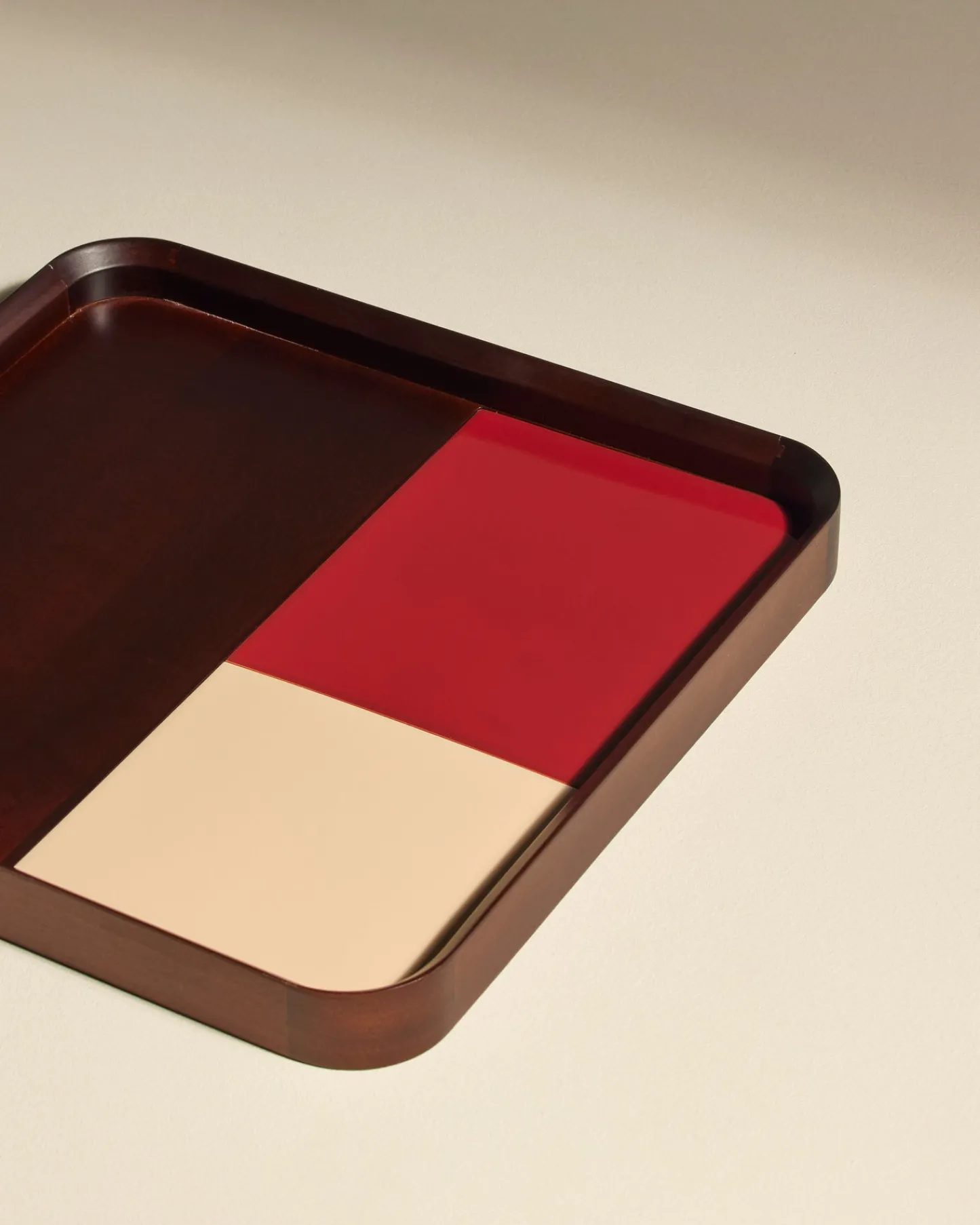 Conçu en bois exotique de freijo au Portugal, le plateau Sicilia a été travaillé à la main et à la machine pour l’assemblage des angles par tenon-mortaise.