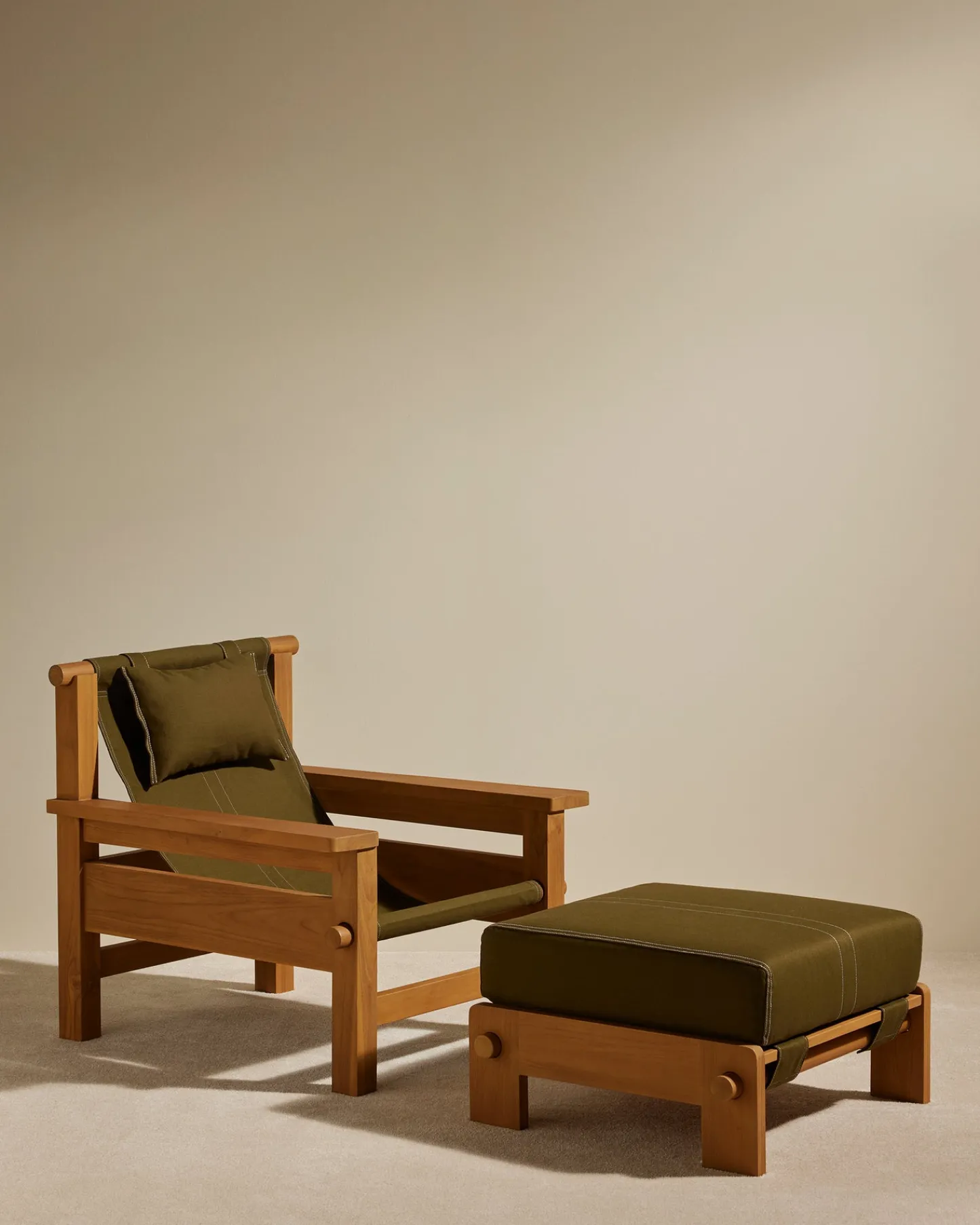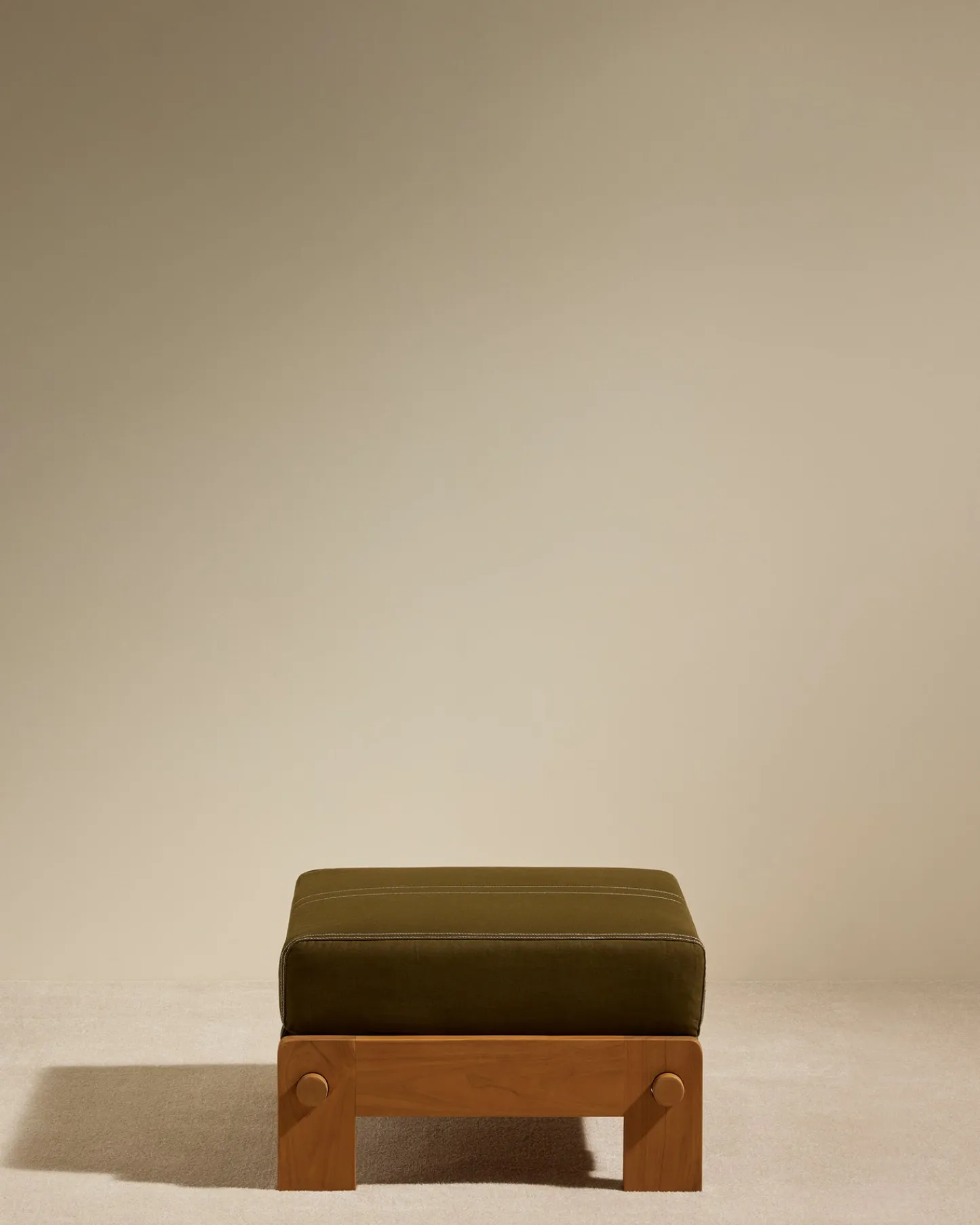 Conçu en teck naturel, ce pouf arbore un coussin confortable et élégant en coton avec piqure sellier.
