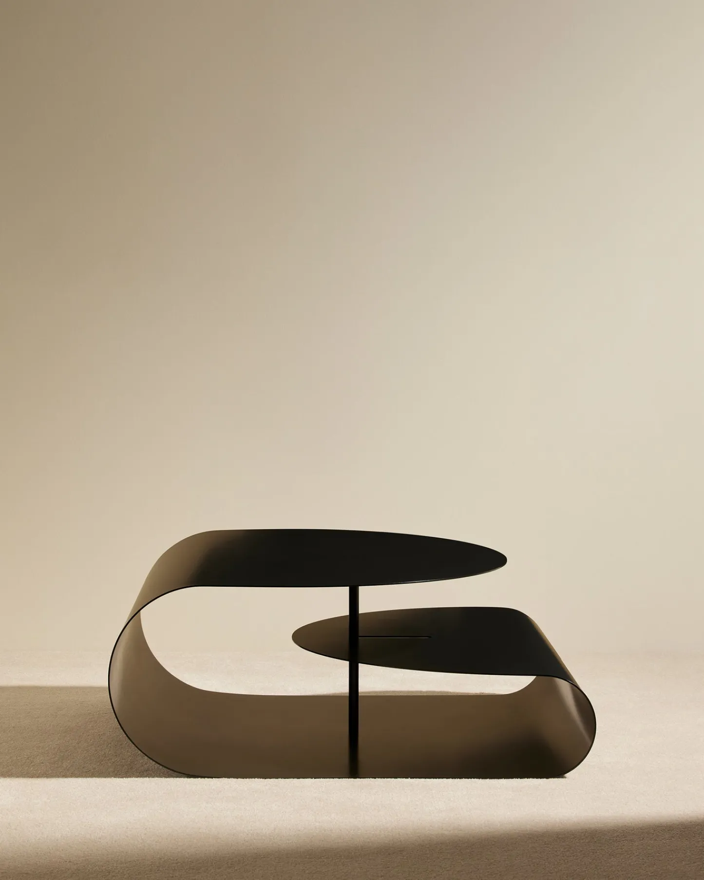 En volupté. Héritière des premiers travaux du Studio sur lʼacier, la collection Gégé met sur un piédestal la pureté de ce matériau signature. Avec ses volumes généreux et son chassé-croisé harmonieux, la table basse éponyme fait son effet.