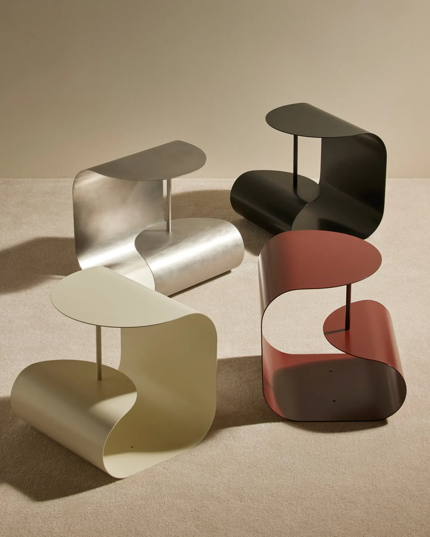 Envolée déco. Héritière des premiers travaux du Studio sur lʼacier, la collection Gégé met sur un piédestal la pureté de ce matériau signature. La table d’appoint Gégé est une petite beauté à l’ergonomie aérienne, déclinée en quatre teintes ultra-désirables (écru, noir et carmin), mais aussi en inox.